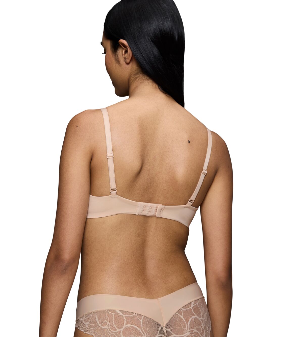 حمالة صدر مبطنة ومدعمة بسلك وياقة عميقة مع سلك مرن وحواف حشوات متلاشية. مصنوعة من حشوة خاصة تعمل على تركيز ورفع الصدر. تعمل وسادة الحشوة المدمجة على ضبط الرفع، والتي تصبح أقوى للصدور الصغيرة، وأكثر لطفًا للصدور الكبيرة. إنها حمالة صدر يمكن للنساء الثقة بها ولكن لا يشعرن بها. مصنوعة من دانتيل ناعم وألياف دقيقة ناعمة كريمية، وكلاهما معاد تدويرهما جزئيًا