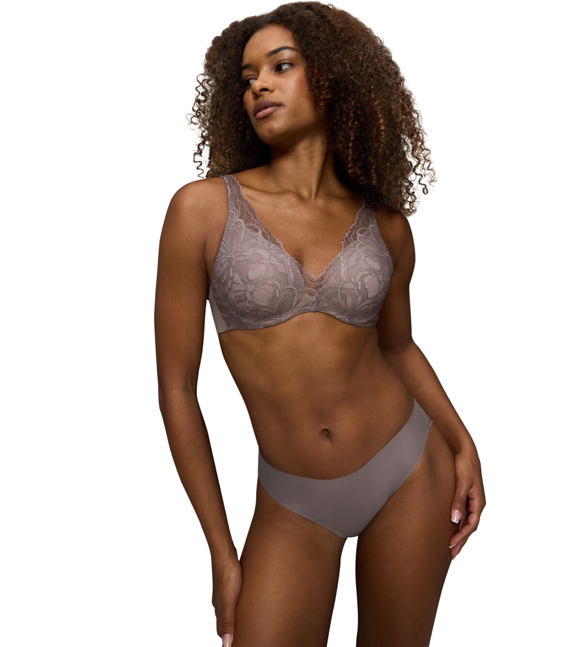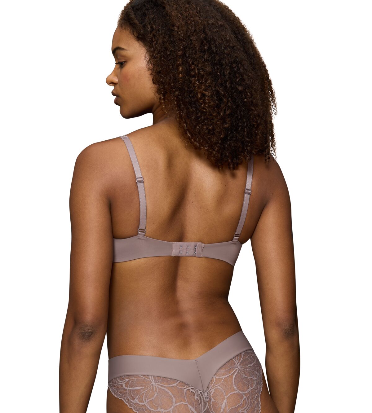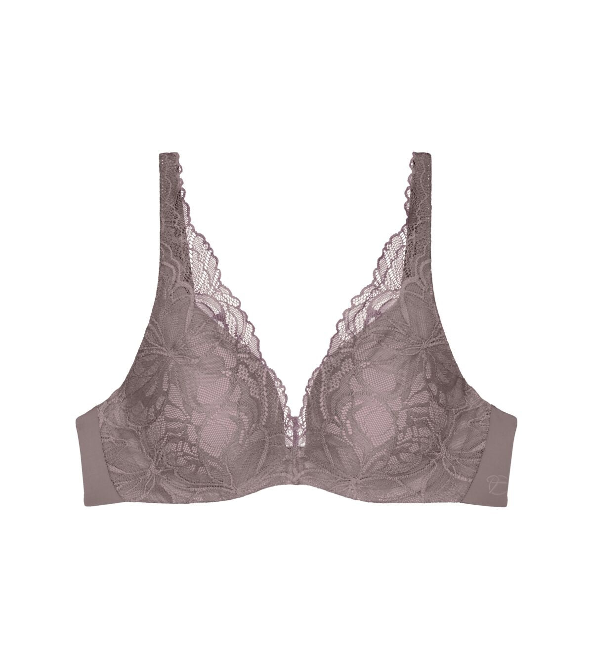 حمالة صدر مبطنة ومدعمة بسلك وياقة عميقة مع سلك مرن وحواف حشوات متلاشية. مصنوعة من حشوة خاصة تعمل على تركيز ورفع الصدر. تعمل وسادة الحشوة المدمجة على ضبط الرفع، والتي تصبح أقوى للصدور الصغيرة، وأكثر لطفًا للصدور الكبيرة. إنها حمالة صدر يمكن للنساء الثقة بها ولكن لا يشعرن بها. مصنوعة من دانتيل ناعم وألياف دقيقة ناعمة كريمية، وكلاهما معاد تدويرهما جزئيًا