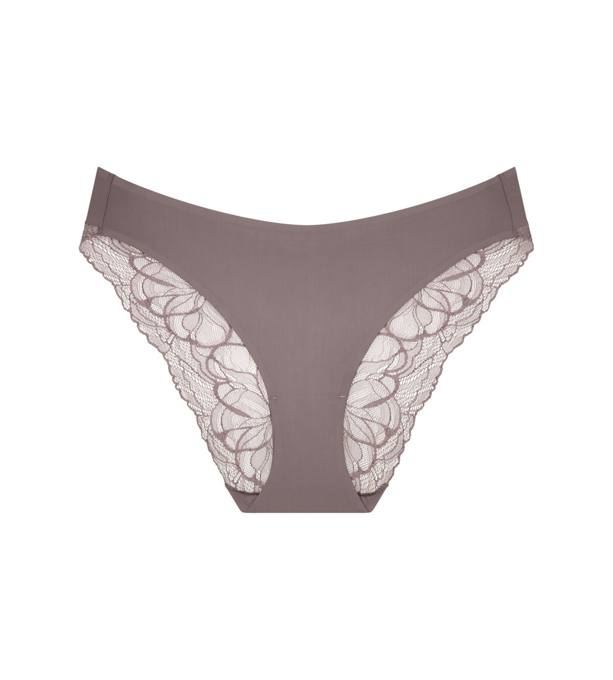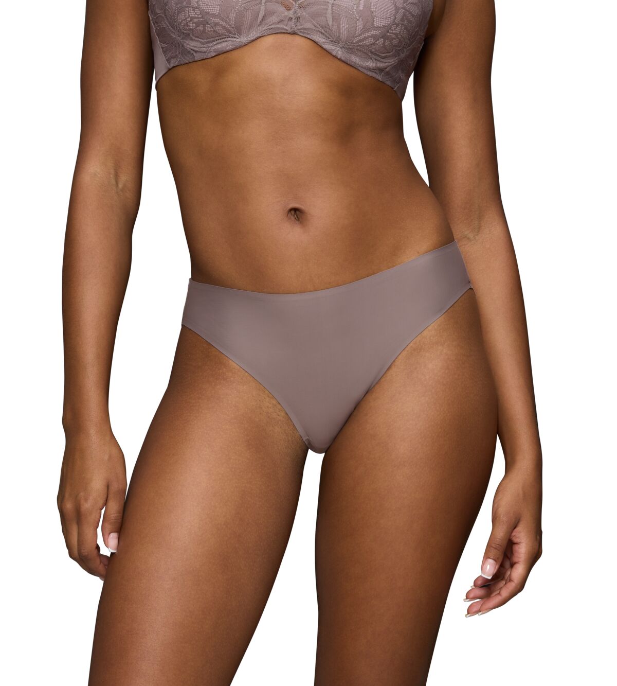 سروال داخلي تاي بتغطية متوسطة وساق عالية مع رباط سلس وحزام خصر ناعم لإحساس بشرة ثانية. سروال داخلي مصنوع من دانتيل ناعم وألياف دقيقة ناعمة كريمية، وكلاهما معاد تدويرهما جزئيًا