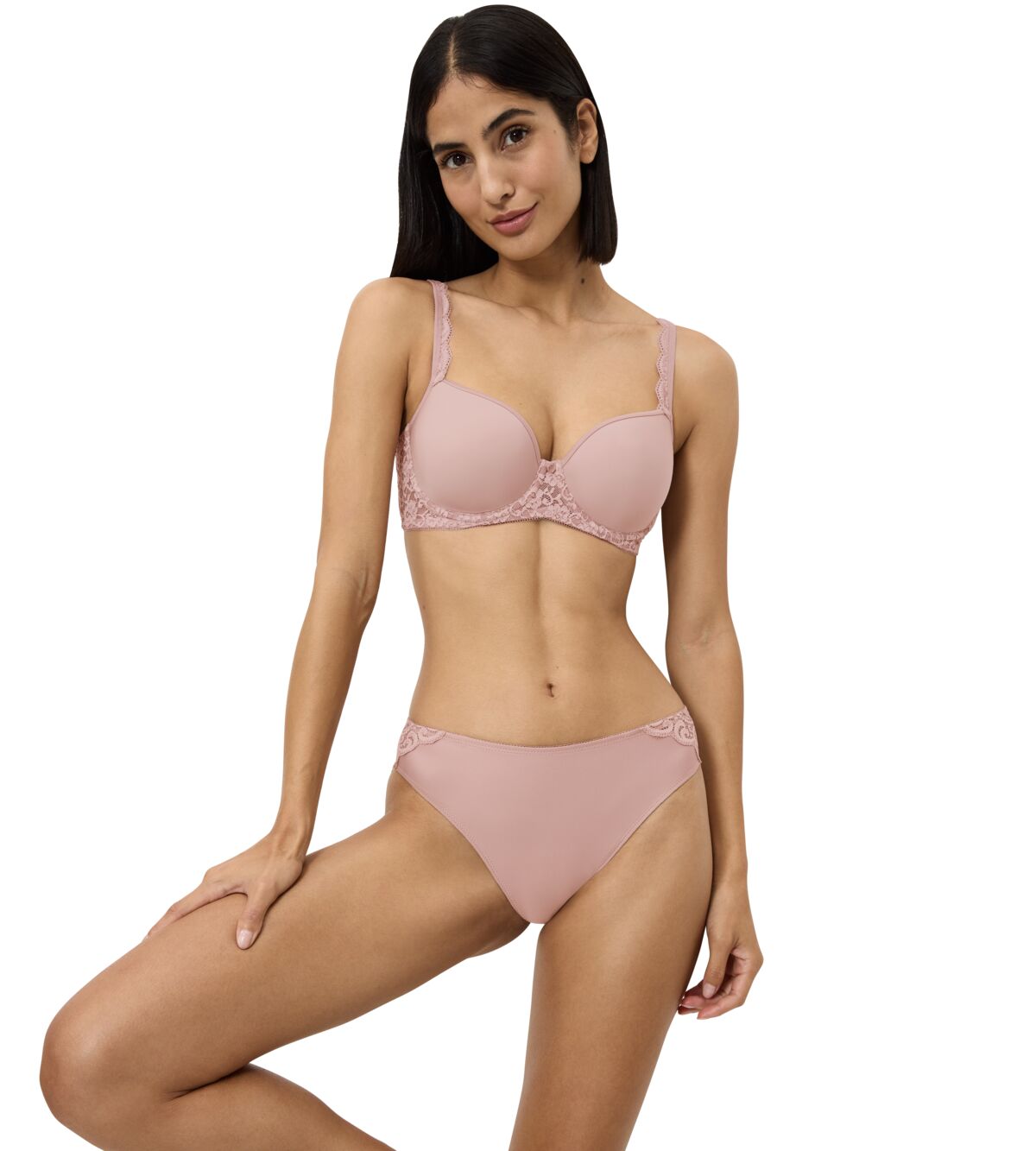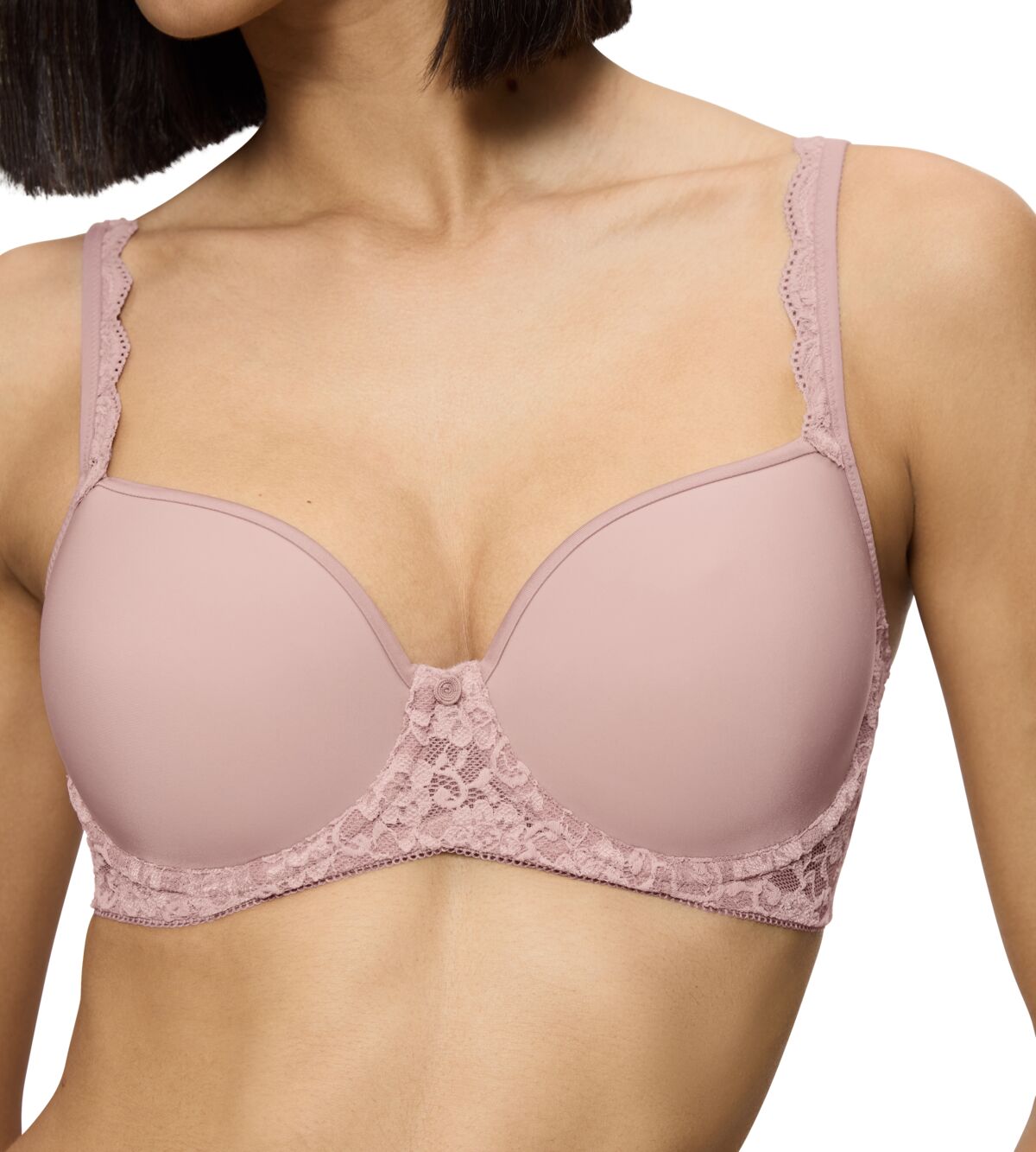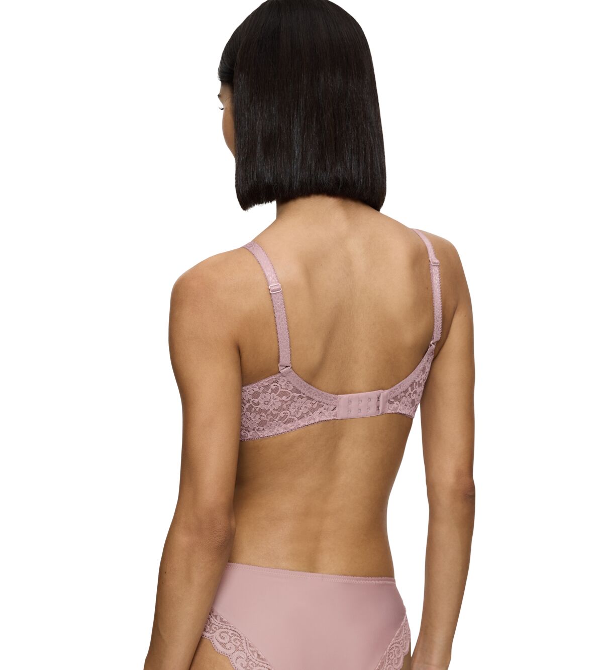 Wired padded spacer cup bra with light and breathable cups. New wire tape: soft, smooth & modern. Delicately sewn underbust. Modern scoop back design for extreme ergonomic comfort and flattering fit. New V-slides for additional comfort and support