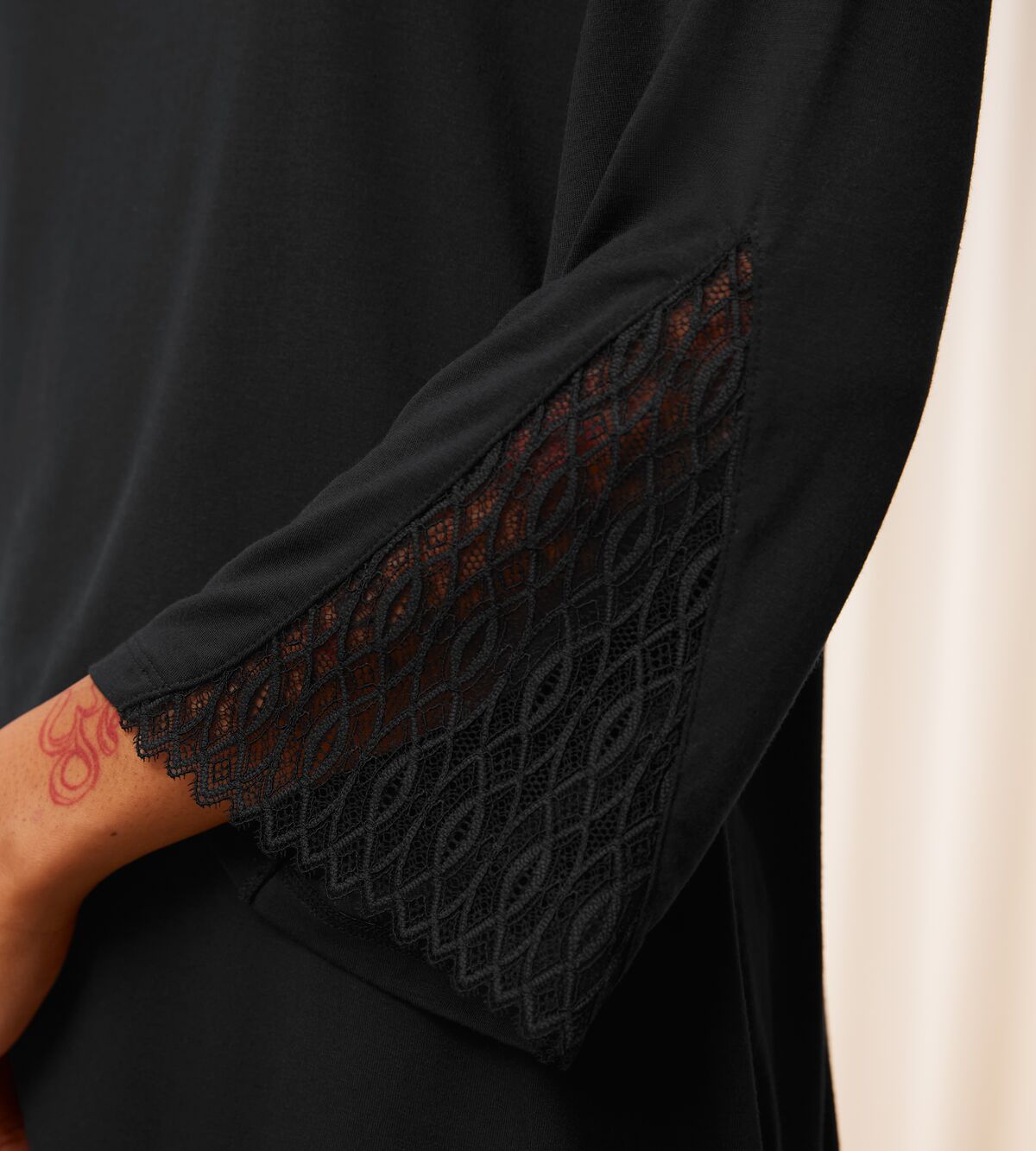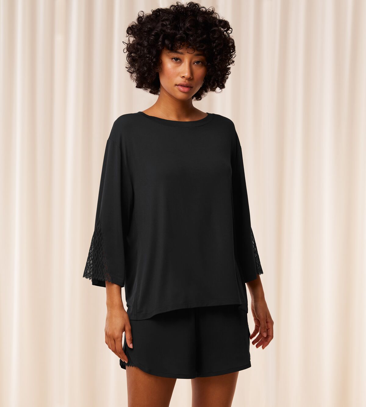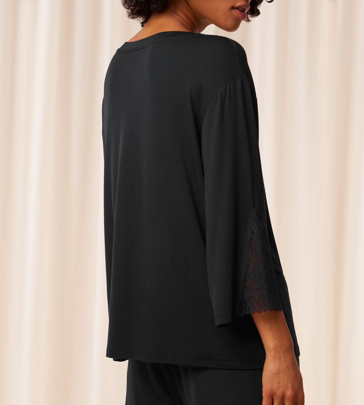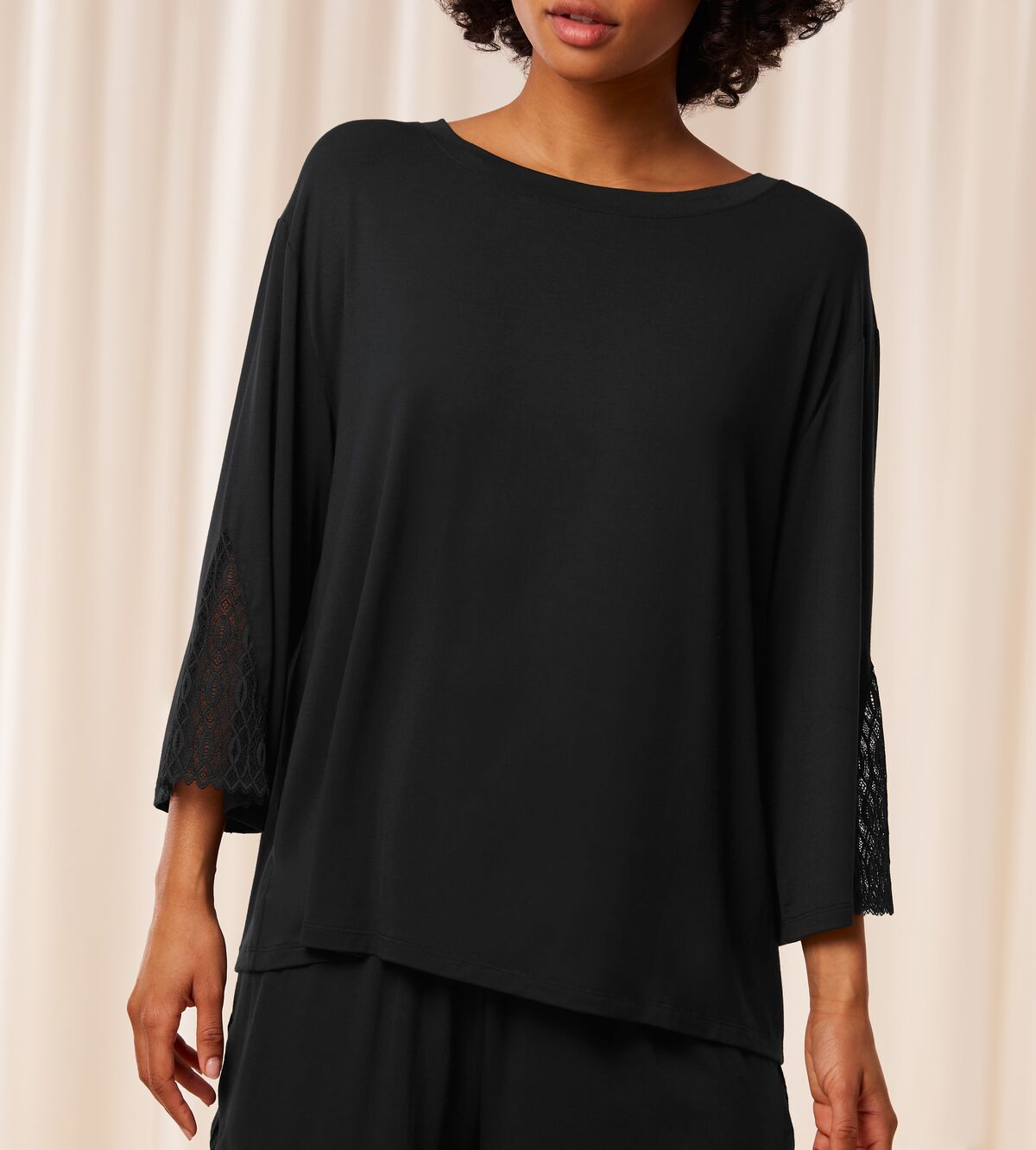 Versatile 3/4 sleeve top, designed for year-round comfort. Made almost entirely of soft, elastic TENCEL Modal fabric which ensures a flattering silhouette. The delicate lace inserts add a touch of elegance for the perfect blend of sensuality with comfort.